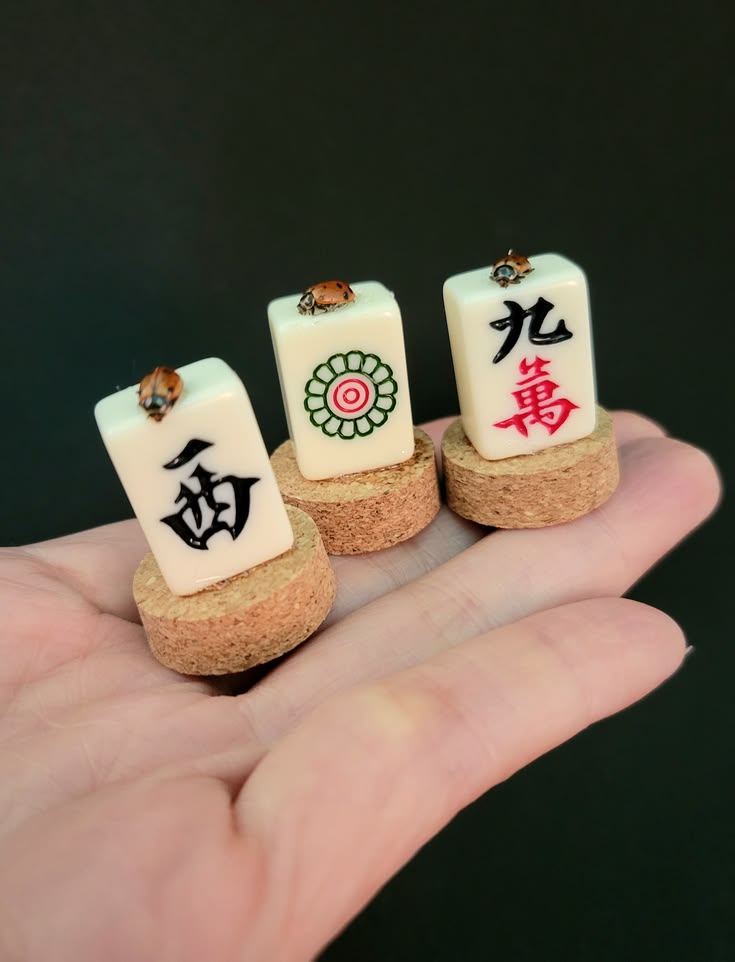 Entertaining insects: Hardworking Bees enjoying much-deserved sweet boba drinks and lucky Ladybugs blessing a fun game of mahjong. These insects are ethically sourced and enjoying a second life with a bit of Asian whimsy.